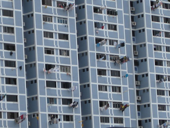 Da sogar in Singapur Karfreitag ein Feiertag ist, kamen wir zuegig mit dem Taxi durch die Strassen zu unserem Hostel. Unser Zimmer war doch etwas beengt, denn die ca. 6m² waren mit zwei Etagenbetten voellig ausgefuellt. Dennoch hatten wir Glueck, nicht in einem der 60Bett-Zimmer untergekommen sein zu muessen. Auch die Aussicht von der Sammeltoilette war spektakulaer, da eine komplette Aussenwand fehlte und man so freien Blick auf die umliegenden ungesicherten Baustellen hatte.