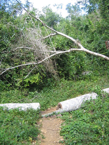 Der Pfad wird immer enger; Hurrican Ike hat auch hier manchen Baum umgekippt, für den Besucher hat man aber sogar den Stamm getrennt.