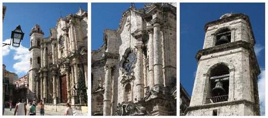 Eigentlich zunächst als Kirche für den Jesuitenorden begonnen, wurde barocke Bau mit Korallenkalkfassade (Bauzeit 1748-1778)1789 zur Kathedrale erhoben. Der sogenannte Churrigueras-Stil in Kuba ereichte seinen Höhepunkt in der dynamisch gestalteten Fassade der Kathedrale mit ihren konvexen und konkaven Formelementen, den abgestuften eckigen Gesimsen und den beiden asymmetrischen Türmen.