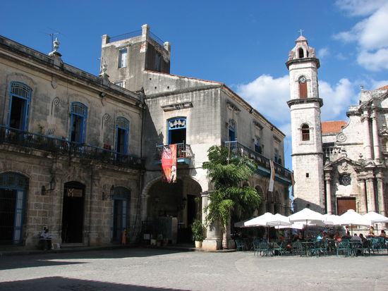Auf dem Wege zur Plaza de la Catedral durch eine kleine Nebenstrasse fallen uns zum ersten Male die temperamentvoll Domino spielenden Kubaner auf, deren lautstarkes Platzieren ihrer Steine durch die ganze Strasse hallt.
