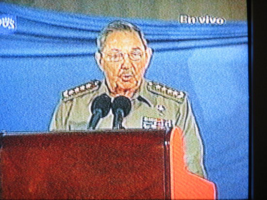In der Stadt wollen wir in der Casa Dolores an der Plaza del Carmen etwas trinken und eine Kleinigkeit essen. Doch die hat auch geschlossen, die mehr oder minder dreckige Einheimischenbude gegenüber hat zwar geöffnet, aber gefällt uns nicht. Daher beschließen wir auf der Terrasse des Gran Hotels nochmal das gestrige zu wiederholen. Aber dorthin kommt man inzwischen nicht mehr, denn der Parque Cespedes ist hermetisch abgeriegelt wegen Roaouls Rede um 18.00 Uhr.