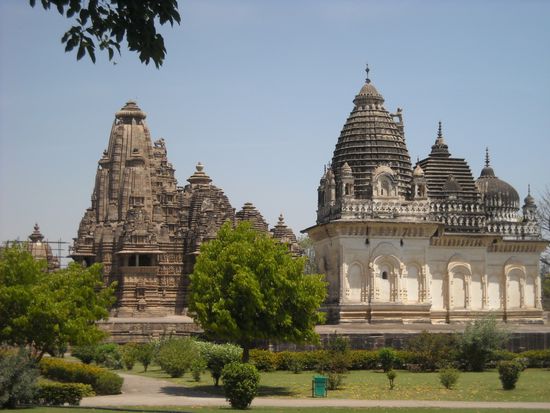 Jetzt geht die Reise fuer mich allein weiter, aber zurueck zu den Tempeln in Khajuraho: sie waren wirklich toll und haben uns fuer die vorherige Stadt (wie hiess die gleich noch mal? Hab ich wohl verdraengt!) mehr als entschaedigt. Die mehr als 1000 Jahre alten, bemerkenswert gut erhaltenen, filigran gearbeiteten Figurenreliefs an den Waenden der verschiedenen Tempel haben uns echt verzaubert. Gelegentlich wurden wir auch ganz schoen rot (naja, Toni nicht ganz so !)