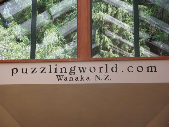 Der "Leaning Tower of Wanaka". Der Turm steht schief vor der Puzzling World und dessen Uhr begann um Mitternacht am 01.01.2010 zu laufen. Rückwärts natürlich!!!