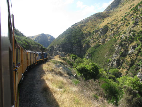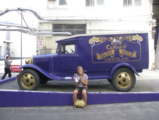 Da wir heute mal wieder einen Tag frei hatten, entschlossen wir, schon einige Tage im Voraus, diesen zu nutzen, um einen Tagesausflug nach Dunedin zu machen. Dunedin ist von seiner schottischen Vergangenheit geprägt. Somit liegt auch nahe, dass der schottisch-englische Name der Stadt Edinburgh ist. Dunedin ist die viertgrößte Stadt des Landes und rühmt sich damit, sowohl Neuseelands erste Universität, als auch das erste Tagesblatt Neuseelands gehabt zu haben. Nachdem wir morgens knapp vier Stunden nach Dunedin gehfahren waren, kamen wir um 11 Uhr in der Stadt an. Wir parkten unser Auto und gingen zuerst zum Oktagon. Das Oktagon ist das Stadtzentrum Dunedins und hat, wie man vermuten kann, die Form eines 8-Eckes. Dort findet man, neben einer etwas unübersichtlichen Straßenführung, das Rathaus der Stadt, die St Paul's Kathedrale und einen kleinen Park mit einem Denkmal für Thomas Burns, dem Gründer der Stadt. Nachdem wir uns dies alles ein wenig genauer angesehen hatten, gingen wir Richtung "Cadbury World". Cadbury kann man den neuseeländischen Marktführer der Schokoladenherstellung nennen. Mit seinem lilafarbenen Gebäude kann man die Cadbury World kaum verfehlen. Dort buchten wir dann auch eine Tour, die zweiStunden später beginnen sollte. Um die Zeit nicht mit warten zu verbringen, entschlossen wir uns noch einmal genauer Dunedin zu betrachten. Zu allererst fanden wir dann auch noch einen Kiltmacher. Die Auswahl an Kilts und allem was dazu gehört war mindestens genauso umwerfend wie die Preise. Nach ausgiebiger Erkundung der Stadt ging es dann auf die Cadburytour. Wir wurden von unserer netten Führerin Ann Marie freundlichst begrüßt. Leider mussten wir auch erfahren, dass in der Fabrik momentan umgebaut wurde und wir somit nicht in der Lage seien alles zu sehen. Jedoch wurden wir mit mehr kostenloser Schokolade bei Laune gehalten. Nachdem wir uns alle die Finger sterilisiert hatten und schöne Haarhauben verpasst bekommen hatten, sahen wir einen Film, der uns über das richtige Verhalten bei der Tour aufklärte. Daraufhin bekamen wir dann die ersten Süßigkeiten. Jeder bekam eine kleine Tüte, die sich im Laufe der Tour immer weiter füllen würde. Als nächstes Stellten wir all unsere Rucksäcke in ein großes Schließfach, da diese bei der Tour nur stören würden. Ann Marie stellte dann fest, dass Robin der einzige Mann war, der einen Bartschutz bekommen hatte und dafür bekam er von ihr eine weitere Portion Schokolade geschenkt. Dann ging es endlich los. Zuerst sahen wir den Lagerturm in dem bis zu zehn Tonnen Schokolade gelagert werden können. Oft kommt dies jedoch nicht vor. Dann wurde uns auf einer Schautafel erklärt, wie man Backkakao, Vollmilchschokolade, weiße Schokolade und Dunkle Schokolade herstellte. Wer bei der Frage "Welche Schokolade er denn am liebsten möge." Mit "alle" antwortete bekam das nächste Schokoladenpäckchen. Danach ging es dann in den ersten richtigen Teil der Fabrik. Hier sahen wir wie riesige Blöcke von Schokolade aus einem Mix von Milch, Zucker, Kakaobutter und Kakaomasse hergestellt wurden. Die ganze Führung wurde immer wieder von sehr lehrreichen Videos unterlegt. Dann ging es an die nächste Station, dort werden über sechs Monate hinweg Ostereier und Osterhasen von Hand bemalt und mit Dekoration verziert. Die sechs Monate Arbeit werden von Neuseeländern dann in weniger als zwei Wochen verspeist. Leider konnte man an diesem Standort nicht sehr viel sehen, da Cadbury momentan dabei war, das Verfahren auf Maschinenarbeit umzustellen. Diese Maschinen kommen, wie sollte es auch anders sein, aus dem Erfinderland Deutschland. Und da Ann Marie fand, dass die Deutschen für ihren Witz und ihr erfinderisches Geschick belohnt werden sollten, bekamen wir je eine weitere Packung Schokoladentropfen, die übrigens kein Abfallprodukt sind, wie man zu glauben scheint, sondern extra produziert werden. Als nächstes wurden wir an den Ort geführt an dem normalerweise die Pralinen produziert werden, doch auch hier wurde leider fleißig gebaut wodurch, das einzige was man sehen konnte ein Film war. Danach ging es noch in das große Kühl- und Lagerhaus bevor wir noch in eines der Silos spazierten. Dort erlebten wir unser schokoladenes Wunder. Nachdem wir dreimal laut "We want chocolate" gerufen hatten, flossen innerhalb von 30 Sekunden eine Tonne Schokolade in einem riesigen Schokoladenfall vor uns das Silo hinunter. Schließlich sollten wir zu unserem letzten Punkt der Schokoladentour kommen. An dieser Stelle werden die, in Neuseeland allseits geliebten, Jaffas produziert. Jaffas sind kleine orange- rote Schokoladenkuglen, die innen aus einem leicht cremigen Schokokern bestehen, der von einem nach Orange schmeckenden Mantel umzogen ist. Jedes Jahr veranstaltet Cadbruy einen Karneval, bei dem man überdimensionale Jaffas die Baldwin Street herunterkullern gelassen werden. Man kann dort einen Jaffa mit einer Nummer für einen Dollar kaufen. An besagtem Tag werden Tausende Jaffas die Straße runter kullern lassen und der Sieger, dessen Jaffa als erstes über die Ziellinie rollt bekommt einen Berg von Cadburyschokolade geschenkt. Nachdem wir auch diesen Punkt gesehen hatten, war unsere schöne Führung leider auch schon zu Ende. Da wir den Tag aber noch fast vor uns hatten, machten wir uns danach auf den Weg das am zweit häufigsten fotografierte Gebäude der südlichen Hemisphäre zu betrachten, den Bahnhof von Dunedin. Er ist im viktorianischen Stil erbaut und wirklich schön anzusehen. Als wir den Bahnhof auch von innen inspizierten, erfuhren wir, dass 10 Minuten später eine Bahn abfahren würde. Diese nannte sich Taeri Gorge und würde diesen auch befahren. Die Fahrt sollte hin und zurück fast sechs Stunden gehen. Die Strecke wurde als eine der landschaftlich schönsten Bahnstrecken der Welt ausgezeichnet und wurde nur zweimal täglich von besagtem Zug befahren. Neugierig begaben wir uns an Board. Der Zug war ziemlich alt, was seinen Charme n