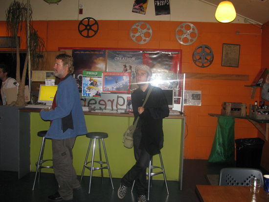 Obwohl heute zu wenige Leute auf der Arbeit waren und wir angerufen wurden, gingen wir abends nicht arbeiten. Immerhin hatten wir schon große Pläne. Wir würden heute in das wohl am meisten beschriebene Kino Neuseelands gehen. Nicht nur, dass die hausgemachten Cookies nach Geheimrezept der absolute Renner unter allen Einheimischen, sowie Besuchern sind und sogar im Lonely Planet und London Herald beschrieben wurden, auch sonst war das Kino sehr außergewöhnlich. Als wir ankamen wären wir fast an ihm vorbeigegangen, da das Kino nicht größer ist wie ein normales Wohnhaus. Als wir dann das Kino betraten, bestand es aus einem großen Raum in dem sich alle Leute aufhielten, dort konnte man an einer Art Bar sowohl die Tickets als, auch das Essen kaufen. Zu unserem erstaunen waren die Eintritts- und Essenspreise wirklich human. Nachdem wir unsere Karten gekauft hatten, oder besser Robin dies getan hatte, den er lud Laura ein, öffneten sich auch schon die Pforten des einzigen Vorführsaales. Als wir ihn betraten sahen wir nicht, wie man es sonst tun würde, die steifen Kinositzreihen, nein, wir fanden eine bunte Sammlung von Sofas und Sesseln aller Art vor. Diese waren mit vielen Kissen belegt, um sie noch gemütlicher zu machen. Das absolute Augenmerk war jedoch ein kleiner uralter gelber Mini, dessen Dach entfernt worden war. Auch dort konnte man drinnen Platz nehmen. Nachdem wir unseren Platz ausgewählt hatten, fing auch schon ziemlich schnell der Film an. Zu unserem Gefallen und großen Erstaunen stellten wir fest, dass es keine lange Werbung gab, sondern der Film ziemlich gleich anfing. Wir schauten uns übrigens den Film "Avatar" an. Zwar war dieser schon lange aus allen großen Kino verschwunden, aber das Cinema Paradiso zeigte Filme gewöhnlich immer ein wenig später. Nach gut einer Stunde wurde der Film dann für eine Pause unterbrochen. In dieser konnte man die viel besagten und dort noch warmen Cookies kaufen. Was hierbei nicht vergessen werden sollte ist, dass sie wirklich ausgezeichnet schmeckten. Nach einer kurzen Pause ging es dann weiter. Der Film war wirklich hervorragend, genau wie das Kino mit seiner einzigartigen Dekoration. An den Wänden konnte man hunderte Filmplakate finden und auch andere kinotypische Gegenstände waren aufgehangen worden. Als der Film zu Ende war, blieben wir noch eine Weile, um uns die Dekoration etwas ausführlicher zu betrachten und gingen danach, nach einem schönen Abend, nach Hause.