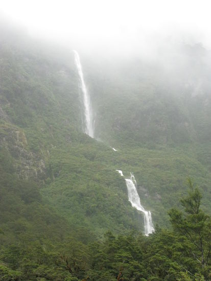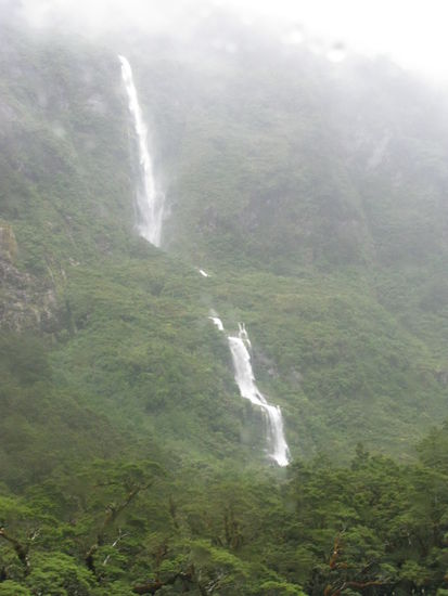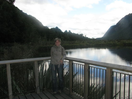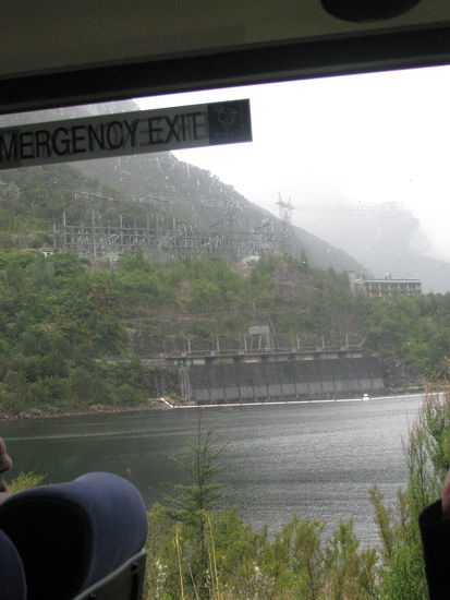 Da wir heute unseren 2-Tagesausflug machen wollten, standen wir bereits sehr früh auf. Während Robin mit seiner Familie über Skype redete, packte Laura alle weiteren Sachen, die wir noch nicht am Vorabend vorbereitet hatten. Da es der Geburtstag von Robins Vater war, redete Robin etwas länger als gewöhnlich mit allen Verwandten und Bekannten. Dies kam Laura zu gute, da sie somit genug Zeit hatte alles Restliche zu packen. Nach Beendigung des Telefonats ging es geradewegs ins Auto und wir machten uns auf den Weg nach Manapouri. Manapouri ist ein kleiner Ort, der an dem gleichnamigen See gelegen ist. Der Name Manapouri ist Maori und bedeutet so viel wie "sorgenvolles Herz" allerdings hieß der See nicht immer so. Er entstand aufgrund eines Übersetzungsfehlers in der frühen Geschichte der Siedler, blieb jedoch haften. Ursprünglich hieß der See Moturau, was so viel heißt wie "viele Inseln". Dies ist sehr zutreffend, da sich in dem See über 34 anerkannte Inseln befinden. Jedoch ging es uns heute nicht wirklich um den See an sich sondern das, was ihn eigentlich einzigartig macht. Der See beheimatet Neuseelands größtes Wasserkraftwerk und das ohne, dass irgendwelche Veränderungen an der Struktur des Sees, ausgeführt werden musste. Da der Lake Manapouri in Neuseelands größtem Nationalpark und gleichzeitig Weltkulturerbe liegt, waren große technische Eingriffe nicht möglich. Unter anderem wurden sie auch von der Öffentlichkeit abgelehnt. Vor etwa 50 Jahren plante man den Wasserspiegel des Sees um über 30 Meter anzuheben. Dies hatte massive Proteste und die Gründung einer Kampagne zu folge. Letztendlich kam es dazu, dass das Kraftwerk die Auflage hat, nur so viel Wasser entnehmen zu dürfen, dass der Wasserstand in seinem natürlichen Rahmen bleibt. Dieser Rahmen bildet sich wenn man den Höchststand im Winter und den Tiefststand, der entsteht wenn der Waiau River, der den See speist, wenig Wasser führt und im Sommer Wasser durch hohe Temperaturen verdunstet, in Betracht nimmt. Das Wasser um das Kraftwerk zu betreiben wird ständig dem See entnommen und dann über einen 10km langen Kanal in den Doubtful Sound geleitet, der wiederum ins Meer fließt. Dies war alles nur möglich, da der See über dem Meeresspiegel liegt. Über den besagten See fuhren wir nun per Schiff um an das Wasserkraftwerk zu gelangen. Wir hofften auf viele lehrreiche Informationen und einen kleinen Einblick in die Arbeit des Kraftwerkes. Zum ersten Mal kam die Idee für einen Bau des Kraftwerkes 1904 auf, jedoch war damals die Technik noch nicht weit genug fortgeschritten um die benötigten Aushöhlungen des massiven Granits vorzunehmen. Dann im Juli 1963 konnte der Bau des Kraftwerkes beginnen. Zuerst musste man einen 2km langen Tunnel in den massiven Granit bohren, wozu man dieselben Geräte verwendete, die man auch zum Bau des Ärmelkanals genutzt hatte. Des Weiteren wurde eine 200m lange und drei Stockwerke hohe Maschinenhalle ausgehoben. Als der Bau der Maschinenhalle und des Tunnels beendet war, war der schwierigste Teil schon geschafft. Hierbei wurden über 3000 Tonnen TNT verwendet. Bis zur endgültigen Vollendung des Kraftwerkes vergingen 8 Jahre, 8 Millionen Arbeitsstunden und es wurden 135 Millionen Neuseelanddollar investiert (Zu beachten ist, dass diese Kosten im Jahre 1963 lagen). Nachdem wir mit unserem Boot den See überquert hatten, wartete bereits ein Bus auf uns, der uns den 2km langen spiralförmigen Tunnel hinunter zur Maschinenhalle fahren würde. Dort erfuhren wir, dass bald nach der Inbetriebnahme klar war, dass ein zweiter Abflussstollen gebaut werden musste um die Drückhöhe genügend zu steigern, dass das Kraftwerk auf voller Kapazität betrieben werden konnte. Technisch war dies ohne eine längere Stilllegung nicht bis in die 90er möglich, wodurch das Kraftwerk fast 30 Jahre nur mit einer Leistung von 585MW betrieben wurde. Heute nach Vollendung des zweiten Abflussstollens ist die Leistung auf über 700mW angestiegen. Außerdem erfuhren wir wie ein Wasserkraftwerk eigentlich Strom erzeugt. Das Wasser wird durch Druckrohrleitungen in die Turbinen geleitet. Das durch die Turbinen fließende Wasser treibt diese an und die entstehende mechanische Energie wird dann über einen Rotor in den Generator weitergeleitet. Im Rotor drehen sich elektrisch isolierte, feststehende Kupferspulenpakete, die in einem Eisenkern, den Stator, eingelassen sind. Aufgrund der Bewegung der Magnete im Rotor wird von den Spulen elektrische Energie erzeugt. Der entstandene Strom wird vom Generator in die Transformatoren geleitet und dort von einer Spannung von 13800Volt auf eine Spannung von 220000Volt (AC) hochtransformiert. In der sogenannten Unterstation ist der Transformator an das nationale Stromnetz angeschlossen. Dort werden alle Schaltvorgänge überwacht. Des Weiteren wird von hier aus auch die Stromeinspeisung abgeschaltet, wenn kein Bedarf besteht. Da der Storm zum Teil bis auf die Nordinsel transportiert wird, wird er bei Bedarf von Wechselstrom in Gleichstrom umgewandelt. Der Transport findet über unterseeische Hochspannungskabel statt. Wenn die Elektrizität die Turbine verlassen hat, wird das Wasser über ein Saugrohr in den Doubtful Sound abgeleitet. Nachdem wir das alles erfahren hatten und noch eine Weile Zeit hatten uns alles anzusehen, fuhren wir durch den Tunnel wieder an Land. Danach ging es noch auf eine kleine Rundfahrt auf der teuersten Straße Neuseelands, die zugleich keine weitere Verbindung mit einer anderen Straße hat. Die Straße ist 20km lang und kostete pro Quadratmeter 80NZD im Bau. Am Ende der Fahrt kamen wir wieder an der Anlegestelle des Bootes an. Nach kurzem Warten im Besucherzentrum, das noch einmal voller Informationen war, kam auch schon unser Boot an, das uns wieder nach Manapouri bringen würde. Da der Tag noch relativ jung war, entschlossen wir uns schon Richtung Milford zu fahren. Die Straße von Te Anau nach Milford ist knapp 120 km lang und birgt viele sc