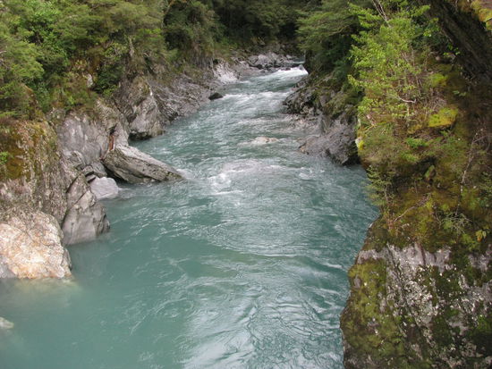 Heute Morgen standen wir gegen 7 auf und machten uns sowie das Auto fertig so, dass wir gegen halb 9 aufbrechen konnten. Unser Ziel war diesmal der Franz-Josef Gletscher, der nicht nach dem ehemaligen Ortsvorsteher von Ittersdorf, sondern nach dem österreichischen Kaiser Franz-Josef benannt wurde. Jedoch sollte unsere Tour erst am kommenden Tag sein, wodurch wir uns entschlossen eine gemütliche Tour zu unternehmen und unter anderem an den "Blue Pools" halt zu machen. Die "Blue Pools of Haast" ist ein Abschnitt des Haast Flusses. Das besondere an den blauen Pools ist, dass sie von Gletscherwasser gespeist werden und dadurch einen aquamarinen Farbton bekommen. Wir parkten unser Auto nach gut eineinhalb Stunden Fahrt und gingen den 20minütigen Spaziergang durch den Wald in Richtung des Flusses. Wieder einmal waren wir fasziniert, von den Leistungen, die das neuseeländische Umweltdepartment bringt. Viele der wunderschönen landschaftlichen Attraktionen sind zum Glück immer noch kostenlos und trotzdem super angelegt. Auch diesmal kamen wir über eine Hängebrücke und überall wo es etwas unbequem geworden wäre, hatte man einen Weg aus Holz und Maschendraht gebaut. Nach weiteren drei Stunden Fahrt kamen wir dann in Franz-Josef, dem Dorf am Gletscher, an. Dort checkten wir erst einmal in unser Hostel ein, das obwohl es ein wirklich großes Hostel war (fast 200 Betten), hatte es etwas sehr gemütliches an sich. Außerdem hatten wir auch die Möglichkeit kostenlos ins Internet zu gehen, was wir nutzten um unsere Email abzurufen. Wir bekamen auch Nachricht von Luke, unserem Mann aus dem Reisebüro. Die günstigste Möglichkeit für uns umzubuchen würde trotzdem über 200 Euro pro Person kosten. Nicht gerade begeistert darüber stimmten wir trotzdem zu, immerhin wollten wir ja an diesen Daten fliegen. Da das Wetter relativ bescheiden war, kochten wir uns erst etwas zu Mittag bevor wir dann "4 Gewinnt" spielten. Nach etwa 20 Niederlagen für Laura wurde es jedoch Robin zu langweilig, da er überzeugt war, dass sie sogar ein 3-Jähriger besiegen konnte. Wir schauten uns danach noch einen Film an bevor es schon wieder Zeit war Abend zu Essen und ins Bett zu gehen. Wir wollten ausgeschlafen sein, immerhin mussten wir morgen früh aufstehen und hatten einen langen Tag auf dem Eis vor uns.