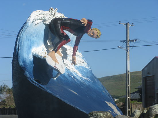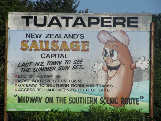 Nachdem wir zu einer gemäßigten Zeit aufgestanden waren und uns fertig gemacht hatten, konnte es los gehen. Wir fuhren zuerst etwa drei Stunden nach Tutapere, die südwestlichste Stadt Neuseelands und zugleich Würstchenhauptstadt des Landes. Wir wollten natürlich die "in Neuseeland weltberühmten Würstchen" kosten. Als wir jedoch an der ersten Metzgerei ankamen waren wir entsetzt, denn diese war geschlossen. Immerhin waren wir sozusagen einen 50km " Umweg" nur für diese Würstchen gefahren. Nach einem schnellen Blick in den Lonely Planet wurde uns jedoch klar, dass dies nicht die gesuchte Metzgerei war. Dann etwa 700m später fanden wir sie. Wir parkten unser Auto und gingen hinein. Obwohl es viele interessante Variationen von Würstchen gab, entschlossen wir uns die "Famous Beef" zu wählen. Immerhin waren sie für diese berühmt. Somit hatten wir also auch unser Abendessen. Nach einem extrem kurzen Spaziergang durch den ganzen Ort stiegen wir dann wieder ins Auto und fuhren weiter an der Southern Scenic Route entlang nach Riverton. Dort fuhren wir mal wieder eine Straße hoch von der wir nicht ganz sicher waren, ob sie unser Auto überleben würde, jedoch hatten wir mal wieder Glück. Oben angekommen blieb uns fast der Atem stehen von der wunderschönen Aussicht, die wir hatten, wir konnten ja nicht wissen, dass es morgen noch besser werden würde. Danach begaben wir uns noch an den Rock Beach bevor wir letztendlich unseren Weg nach Invercargill fortsetzten. Dort angekommen waren wir unter anderem von den absolut billigen Spritpreisen überrascht. Wir hatten eigentlich erwartet, dass es in der Abgeschiedenheit des Südens wesentlich teurer sein würde. Da es schon 17 Uhr war und es in spätestens eineinhalb Stunden dunkel sein würde, machten wir uns auf die Suche nach einem Schlafplatz. Wir kamen dann an den "Oreti Beach", an dem wir unseren ersten Sonnenuntergang am Meer in Neuseeland sahen. Leider konnten wir hier nicht bleiben, da es verboten war. Schließlich fanden wir einen Schlafplatz bei einem See-Pfadfinderheim. Wir kochten uns schnell unser Essen bevor wir ins Bett gingen und bereits um 20:00 Uhr versuchten zu schlafen.