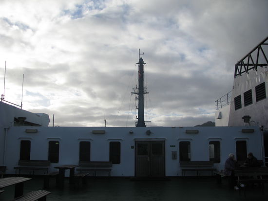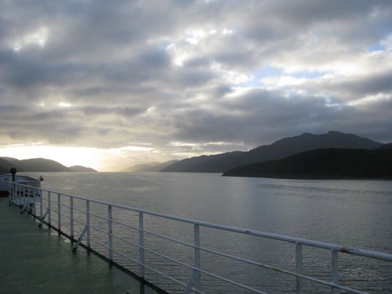 Um 6:00 Uhr klingelte uns mal wieder der Wecker aus dem Bett. Allerdings war dies schon lange nicht mehr so grausam wie früher, da wir inzwischen unseren Biorhythmus an das Sonnenlicht angepasst hatten. Wir gingen somit immer früh ins Bett und das Aufstehen machte uns auch nichts mehr. Unser Frühstück wollten wir essen während wir in der Warteschlange für auf die Fähre standen. Allerdings wurde uns dabei ein Strich durch die Rechnung gemacht, da das Terminal früher öffnete als erwartet. Somit musste Laura ihr Müsli auf den Schoss nehmen und vorsichtig fahren, damit die Milch nicht überlief. Die Fahrt war nur von kurzer Dauer, da wir danach in die zweite Warteschlange für den Tag kamen. Als wir unser Frühstück beendet hatten, rief Laura noch einmal ihre Eltern an um sie auf den neusten Stand der Dinge zu bringen und um Nachrichten aus aller Welt zu erhalten. Nachdem das Telefonat beendet war klopfte ein Mann an unserem Fenster, der sich erkundigte ob wir die letzten Tage an irgendeinem Gewässer gewesen seien und ob wir über Didymo Bescheid wüssten. Didiymo ist eine Wasserpest, die sich zwar bereits auf der Südinsel in fast jeden Binnengewässer und Fluss eingenistet hat, jedoch noch nicht die Nordinsel erreicht hat. Daher war das DOC sehr darauf bedacht, dass niemand verseuchte Gegenstände mit auf die Nordinsel nimmt. Als verseucht zählt alles, das innerhalb der letzten 72h mit kontaminiertem Wasser in Berührung war ohne danach desinfiziert zu werden. Da wir das schon alles wussten und nichts im Wasser hatten, ließ der Mann uns wieder in Ruhe und ging zum nächsten Auto. Als er dann alle Autos abgeklappert hatte, konnten wir endlich boarden. Wir waren einer der ersten und sorgten mal wieder für einen Stau. Als die Frau an der Auffahrrampe zur Fähre unsere Boardingpässe haben wollte, mussten wir sie leider enttäuschen. Das einzige, was wir erhalten hatten war ein Gutschein für ein kostenloses Essen gewesen, den wir ihr vorhielten. Diesen nahm sie uns zu Lauras Entsetzten dann auch noch ab. Allerdings nur um sich unsere Buchungsnummer von ihrer Kollegin zu bestätigen lassen, die es versäumet hatte unsere Boardingpässe an uns auszugeben. Die Verwirrung war jedoch schnell geklärt und wir bekamen unseren Essensgutschein wieder zurück. Nachdem unser Auto schön in der ersten Reihe geparkt war ging es dann auf Deck. Zuerst sahen wir uns das Boot einmal von oben bis unten an, da es draußen ziemlich kalt und windig war gingen wir schnell nach drinnen. Dort verbrachten wir eine Weile mit dem Ansehen eines Filmes. Dieser wurde uns jedoch schnell langweilig und wir spazierten weiter in den Loungebereich. Dort schrieben/spielten wir Lauras Laptop leer. Leider hatten wir danach immer noch über eineinhalb Stunden tot zu schlagen, wodurch wir es wieder mit auf dem Deck sein versuchten. Nach einer Weile waren wir wieder durchgefroren und somit entschlossen wir uns, da es nun ruhig in der Kombüse geworden war unser kostenloses Frühstück einzulösen. Da es auch schon 11:00 Uhr war, war es ein guter Zeitpunkt für ein zweites Frühstück. Es gab ein typisches britisches Frühstück. Ein Würstchen, 2 Spiegeleier, Tomatensauce, gebackte Bohnen und etwas ähnlich zu Kartoffelpuffer. Eine Stunde später kam unser Schiff dann endlich in Wellington an. "Endlich" eher im Bezug auf das die Schifffahrt zu Ende war, nicht weil wir unbedingt wieder auf der Nordinsel sein wollten. Immerhin würde es nun ziemlich schnell zum Ende kommen. Unser Auto startete einwandfrei und wir fuhren mal wieder auf die Oriental Parade um zu parken. Diese war jedoch erstaunlich gut besucht und wir mussten eine gute Strecke gehen bis wir im City Center waren. Dort gingen wir zuerst nacheinander im Lambton Quay kostenlos warm(!) Duschen. Dies war besonders zu Lauras Freude, da wir seit 17 Tagen nur noch kalt bis eiskalt geduscht hatten. Frisch und sauber ging es dann ins Internetcafe, wo wir von der Besitzerin mit einem freudigen "Hallo, ihr seid ja zurück!" begrüßt wurden. Da fragt man sich doch echt wie viel Geld man bei denen gelassen hat. Allerdings muss man sich dann wieder ins Gedächtnis rufen, dass es Neuseeländer sind, die bekanntlich ja ein wenig anders ticken. Mit bearbeiten des Reiseberichtes und Informationen über Fiji suchen verbrangen wir den Rest des Tages. Zum Abendessen gab es gegrilltes Hühnchenspieße mit Zwiebeln und Paprika von Nando's. Deren Soßen waren so scharf, dass Robin sogar die medium scharfe Soße fast zu scharf war. Mit vollem Bauch begaben wir uns dann ins Bett.