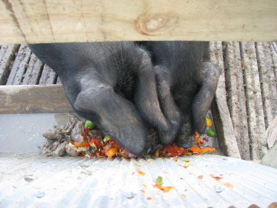 Freitag war im Prinzip unser letzter Arbeitstag. Somit wollten wir diesen mit etwas besonderem verbringen. Zuerst gingen wir jedoch nach draußen und gruben einen Strauch Brombeeren ohne Dornen aus. Wir ließen die Wurzeln unbeschädigt, da Sheryn die einzelnen Zweige am kommenden Tag verkaufen wollte. Danach sollten wir dann noch einen kleinen Busch, der sich als riesiges Ungetüm hervortat, entfernen. Als wir diese Aufgabe dann endlich hinter uns gebracht hatten, machten wir uns noch daran Spinat, sowie Yacon (ein Kraut, das wie ein Apfel schmeckt, aber in der Erde wächst, auszubuddeln) sowie noch irgendein anderes Gewächs (Beinwell/Schwarzwurz). Damit war unsere Gartenarbeit auch schon fast erledigt. Zuallerletzt sammelten wir noch altes Geäst auf, das im Garten lag, um es unter einen trockenen Unterstand zu bringen, wo es zu Feuerholz werden sollte. Nachdem Robin dann noch Feuer gemacht hatte, gönnten wir uns gegen Nachmittag eine kleine Pause, immerhin sollte die meiste Arbeit für den Tag noch kommen. Wir hatten angeboten noch einmal ein deutsches Essen zu kochen, woraus am Ende ein 3-Gang-Menü wurde. Zuerst hatten wir mittags den Nachtisch vorbereitet, welches eine Panna Cotta mit Passionsfruchtsoße werden sollte. Dann fingen wir abends an den Rostbraten vorzubereiten, den wir am Tag zuvor zum Auftauen aus der Kühltruhe genommen hatten. Diesen bereiteten wir vor indem wir Kreuze in das Fleisch schnitten und Knoblauchscheiben in jedes Kreuz einsetzten. Danach bereiteten wir noch eine Kräuterpaste vor, die zu einer Kruste auf dem Braten backen sollte. Während der Braten im Ofen war, bereiteten wir unser typisch saarländisches Gericht, Horrische, vor. Da alles ein wenig anfing knapp zu werden, mussten wir uns extrem beeilen um den Broccoli noch rechtzeitig in den Ofen zu bekommen, um in der Käsesauce zu backen. Zu guter Letzt machten wir noch eine einfache Vorspeise. Nach einer Stunde stand alles auf dem Tisch und Sheryn, sowie Steven, waren von dem Essen total begeistert! Als wir das Essen beendet hatten und alles aufgeräumt war machten wir uns noch daran Steven Munchkin beizubringen. Somit ging der Tag arbeitsreich, aber extrem lecker zu Ende.