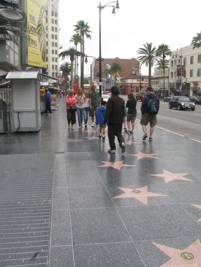 Da wir einiges in Los Angeles und Umgebung geplant hatten, ging unser Wecker um kurz nach 6. Wir machten uns beide fertig und gingen dann in die Lobby um dort unser Frühstück einzunehmen. Eigentlich hätte dieses um 7 Uhr beginnen sollen, jedoch mussten wir noch über eine halbe Stunde warten. Es gab 3 Sorten Müsli, mehrere Sorten Tee, Kaffee und Haferbrei. Wir waren damit absolut zufrieden und frühstücken ausgiebig. Letztendlich waren wir um kurz nach 8 komplett fertig den Tag zu beginnen. Wir spazierten jedoch zuerst zum Besucherzentrum, da wir uns dort die "Go Los Angeles" Karte kaufen wollten. Die Karte hat einen Festpreis und enthält den Eintrittspreis in viele Attraktionen in Los Angeles und Umgebung. Abends zuvor hatten wir das Angebot genau studiert und wenn wir alle Möglichkeiten nutzen würden, die sich an den Plätzen boten, an denen wir vorbeikommen würden, würden wir über 60 Dollar innerhalb von 2 Tagen an Eintritt sparen. Der Weg zum Informationszentrum war zwar relativ kurz, da es jedoch ein wenig versteckt lag, brauchten wir ein Weilchen bis wir es fanden. Dort angekommen erlebten wir eine Enttäuschung: Die Universal Studios, welche wir besuchen wollten, waren erst ab dem dritten Tag inbegriffen, dies würde sich jedoch nichtmehr für uns lohnen. Somit entschlossen wir einfach ein paar Sachen, die wir eh nur gemacht hätten, weil sie durch die Karte kostenlos geworden wären, auszulassen. Nachdem wir nach der Metro gefragt hatten, machten wir uns dorthin auf den Weg und kauften und ein Ganztagesticket. Mit diesem fuhren wir nach Hollywood. Wir stiegen ziemlich am Anfang des Hollywood Boulevards aus, der besser als der "Walk of Fame" bekannt ist. Dort gingen wir dank der etwas oberflächlichen Karte prompt einmal in die falsche Richtung was uns auffiel, da auf einmal keine Sterne mehr auf dem Boden zu sehen waren. Somit gingen wir auf die andere Straßenseite und sahen uns auch noch einmal die Sterne auf der anderen Seite an. So langsam merkten wir, dass wir wirklich früh dran waren, da die meisten Läden noch nicht wirklich offen hatten. Jedoch gingen wir in fast alle, die offen hatten und entweder Converse oder Vans im Angebot hatten, da Robin auf der Suche nach diesen war. Die Richtigen fanden wir jedoch nicht direkt. Also gingen wir weiter. Nach einer Weile kamen wir dann auch schon im Zentrum an. Dort sahen wir das "Kodak Theatre", wo die Oscars verliehen werden. Nebenan lag eine riesen Mall in die Laura später wollte um dort ins Hot Topic zu gehen. Zuerst gingen wir jedoch weiter, wo wir eine Soda Bar von Disney sahen. Auf der anderen Seite ragte groß das Schild des Hard Rock Cafes heraus, welches uns reichlich wenig interessierte. Danach kamen wir zum Graumann's Chinese Theater, welches berühmt ist für seine Fuß- und Händeabdrücke verschiedener Stars. Diese Abdrücke befinden sich auf dem Vorfeld zum Theater und sind in Beton gepresst. Zu bestaunen waren neben vielen alten Stars auch Donald Ducks Füße und die Zauberstäbe der Hogwartsschüler Harry, Ron und Hermine. Nach einer Weile zog es uns jedoch weiter, da wir ins Madame Tussaud's wollten. Bevor wir unser Ticket kaufen wollten, erfuhren wir noch, dass wir den Eintritt kostenlos bekommen würden, wenn wir den Eintritt in die Universal Studios kaufen würden. Nach kurzem Überlegen taten wir dies auch, da wir diese sowieso sehen wollten. Somit sparten wir immerhin 20 Dollar. Nachdem wir gut 2h die gute Machart der Wachsfiguren bestaunt hatten und allen möglichen Unsinn angestellt hatten, verließen wir das Museum mit einem knurrenden Magen. Somit suchten wir uns also ein Plätzchen an dem wir unsere Sandwiches und leicht ramponierten Oreos essen konnten. Danach ging es zurück in die Mall in der Robin nach einer Jeansjacke suchte und eine fand, die ihm gefiel aber noch etwas zu teuer war. Laura besorgte in der Zeit die Sachen, die sie Melanie versprochen hatte zu besorgen. Nach guten 20 Minuten trafen wir uns wieder und entschlossen noch ein wenig die Gegend zu erkunden, als Robin das Hoolywood Zeichen wieder einfiel. Er fragte den Verkäufer des Ladens, der die Jeansjacke anbot danach. Wir mussten uns nur einmal umdrehen und hinter die Mall laufen, da konnten wir es schon sehen. Da es leider ein wenig wolkenverhangen war konnte man es nicht so gut sehen. Als nächstes gingen wir auf die Suche nach dem berühmten Tattoostudio von Kat von D. Nach ewigem Laufen kamen wir dann endlich am High Voltage Tattoo L.A. Ink an. Dort schossen wir noch von außen ein paar Bilder bevor wir nach innen gingen. Drinnen war es ziemlich voll und etwa 5 Leute wurden gleichzeitig tattoowiert. Wir waren ziemlich beeindruckt von all den Bildern an der Wand. Nachdem wir uns umgesehen hatten schauten wir noch ob wir Kat von D treffen würden, da Laura ein Autogramm versprochen hatte, wenn wir die Dame antreffen würden. Dies war allerdings nicht der Fall. Da es uns irgendwann zu voll wurde gingen wir den weiten Weg zur Melrose Avenue weiter. Dies sollte eine wirklich gute Einkaufsstraße für etwas individuellere Sachen sein, wodurch besonders Laura sich einmal umsehen wollte. Leider war der Weg viel länger als es auf der Karte aussah und wir kamen bereits ziemlich geschafft dort an. Jedoch würden wir die nächsten 3 Stunden in gefühlten 1000 Läden verbringen und unsere Zeit damit verbringen Schuhe für Robin zu suchen, sowie eine Jeansjacke. Nachdem er wohl jeder Jeansjacke in der ganzen Straße anprobiert hatte, entschlossen wir uns die erste Jacke des Tages für ihn besorgen zu gehen. Zwischenzeitlich hatte Laura sich noch eine Sonnenbrille gekauft und dazu entschlossen noch ein T-Shirt bei Hot Topic zu kaufen. Da wir zu erschöpft waren den ganzen Weg wieder zurück zu laufen, nahmen wir einen Bus. Wieder am Hollywood Boulevard angekommen besorgten wir also noch unsere Sachen, schossen ein besseres Bild vom Hollywood Zeichen und kauften dann noch ein paar Aufnäher für Robins neue Jeansjacke. Danach setzten