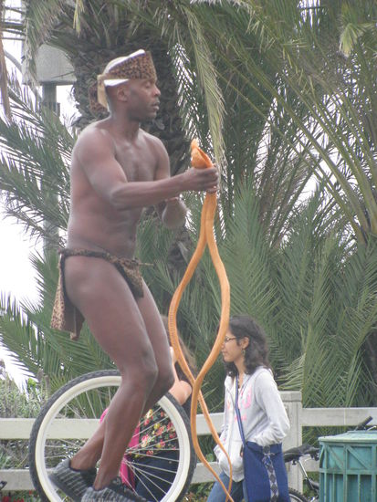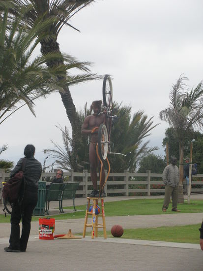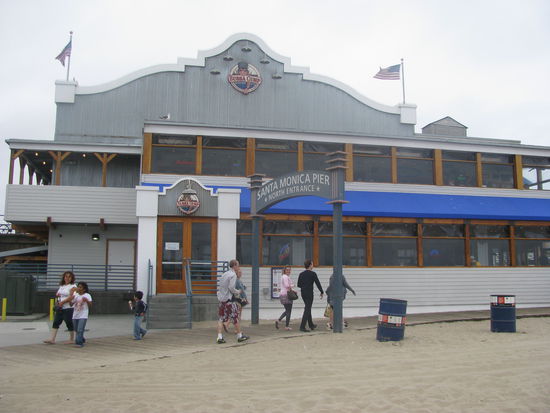 Nach diesem Abstecher in Hollywood ging es dann zum Santa Monica Pier, das viele wahrscheinlich aus dem Fernsehen kennen. Das Santa Monica Pier ist eigentlich gar nichts so besonderes wie immer getan wird. Es erinnert eher an eine kleine Kirmes mit extrem vielen Touristen. Dort sah man auch einen Laden der Bubba Gump Shrimp Kette, die man vielleicht aus Forrest Gump kennt. Am interessantesten am Santa Monica Pier war jedoch ein Ami, der kaum bekleidet auf einem Barhocker stand und 2 Giftschlangen und ein Fahrrad in den Händen hielt. Den Sinn verstanden wir allerdings nicht.