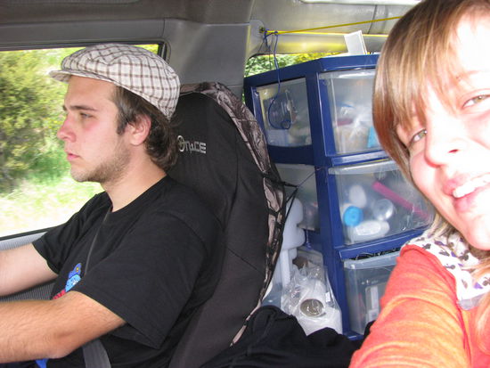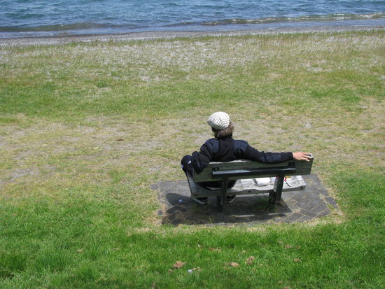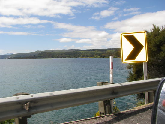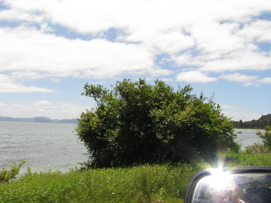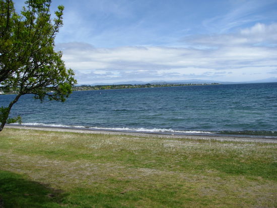 Der Tag begrüßte uns mit schönstem Sonnenschein als wir noch total verschlafen aus unserem Bett krochen. Der heutige Tag sollte uns entlang des Sees Taupo in den gleichnamigen Ort führen. Auf einer lustigen Autofahrt mit offenem Fenster, flatternden Haaren und mitgesungen Liedern verging die Zeit wie im Flug. Während der Fahrt versuchte Laura noch einige Bilder von der Landschaft zu machen, die dank einer ganz guten Kamera sogar zum Teil etwas wurden. Gegen Mittag kamen wir dann in Taupo an. Mit Blick auf den See parkten wir unseren Van und aßen unsere Sandwiches im Sonnenschein auf einer Wiese. Danach fuhren wir los Richtung Schwimmbad. Da wir noch etwa 2 Wochen warten mussten, bis wir einen Job bei der Erdbeerfarm bekommen konnten, entschlossen wir uns noch einen neuen Wwoof-Platz zu suchen. Nach etwa 15 erfolglosen Anrufen hatte diesmal Robin das Glück jemanden zu finden, der bereit war uns aufzunehmen. Äußerst erleichtert gingen wir danach ins Schwimmbad, wo wir einen schönen Nachmittag verbrachten. Zu Robins Bedauern waren jedoch die Wasserrutschen geschlossen wodurch uns "nur" noch drei Schwimmbecken blieben und zwei verschieden heiße Saunas. Die Schwimmbaeder waren auf 27 Grad Celsius Wassertemperatur gehezit, was fuer Robin schon fast zu warm war. Gegen 18:00 Uhr verließen wir das Schwimmbad wieder und machten uns auf den Weg zu einem DOC-Campingplatz. Unser Campingplatz sollte weiter von unserem Standort entfernt sein als wir erwartet hatten und schwerer versteckt. Nachdem es irgendwann nach 22:00 Uhr war, entschlossen wir uns unsere Suche, die nur in mehrfachem Verfahren gefruchtet hatte, aufzugeben. Also fuhren wir in den nächst größeren Ort wo wir, als wir herausgefunden hatten, dass schon alle Hotel- und Motelrezeptionen geschlossen waren, einfach unser Auto auf der Straße parkten und dort schliefen. Zwar war dies nicht die beste Lösung, jedoch waren wir gegen Mitternacht so erschöpft gewesen, dass wir uns nicht mehr drum scherten.