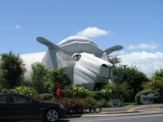 Nach einer viel zu kurzen Nacht klingelte uns unser Wecker um 7:00 Uhr wieder aus dem Bett. Fluchend und total erschöpft ging es dann ans Frühstück. Nachdem wir dann auch noch ein öffentliches Klo gefunden hatten auf dem wir eine Katzenwäsche vollzogen, machten wir uns auf den Weg zu unseren neuen Gastgebern. Zu unserem Erstaunen stellten wir fest, dass wir in der Nacht die Distanz zu unserem Zielort auf lächerliche 10km verkleinert hatten. Nach einer sehr kurzen Fahrt kamen wir in Tirau an. Dort erkundeten wir uns in einem großen Wellbelchschaf, das das Touristenzentrum darstellte, nach dem genauen Weg zu unseren Gastgebern. Weitere 10 Minuten später standen wir dann auch dem Hof von Sheryn und Steven Clothier. Wir parkten unseren Van mitten auf dem Hof, der mit alten Mercedes am überlaufen war. Wir betraten das, was wir für das Büro hielten und lernten Sheryn kennen. Als wir dann auf eine Hausführung eingeladen wurden, lernten wir auch gleichzeitig die beiden Dobermänner Sadies und Shona kennen. Danach wurden wir angewiesen wo wir unser Auto um parken sollten bevor wir das Land begehen würden. Auf unserer Grundstückstour erfuhren wir, dass es 4 Perlhühner, 8 Enten, 2 Schafe, mehrere Kühe und Schweine, sowie eine Katze gäbe. Wir lernten außerdem, dass jedes Tier einen Namen habe und alle, deren Namen mit "S" beginnt seien NICHT zum Verzehr gedacht. Bei unserem Rundgang auf der Kuhweide stellte Sheryn fest, dass am Tag unserer Ankunft ein neues Kalb geboren wurde, dass zu ihrem missfallen ein Bulle war. Jedoch meinte sie würde dieser dann in etwa 18 Monaten auf dem Teller landen. Unsere erste Aufgabe war es dann die gierigen Schweine zu füttern, wobei die Sau fast ihre eigenen Ferkel gefressen hätte. Danach machten wir uns dran unser neues Zimmer zu beziehen. Nachdem wir damit fertig waren, gingen wir wieder in Richtung Küche und leisteten Sheryn Gesellschaft. Dort erfuhren wir unter anderem, dass während unserem Aufenthalt einmal von uns erwartet würde, dass wir kochen. Erst schluckten wir beide relativ heftig, dachten uns dann aber, dass wir das auch auf die Reihe bekommen würden. Zu Mittag gab es Nachos mit einem Chili Con Carne Verschnitt. Trotzdem hat es gut geschmeckt und wir lernten gleichzeitig das Team von Steven kennen. Steven führt zwei Unternehmen gleichzeitig. Beide befinden sich auch praktischerweise direkt neben seinem Haus in einer riesigen Werkstatt. Eines nennt sich MercWorxs. Hier werden alte Mercedes gepflegt und restauriert. Bei Corrugated Creations stellt er zusammen mit einem weiteren Mitarbeiter Kunstwerke aus Wellblech her. Mit dieser Firma hat er sich nicht nur Neuseelandweit einen Namen gemacht, er exportiert seine Werke auch überall in die Welt. Nach dem Mittagessen halfen wir mit dem Geschirr bevor wir den restlichen Tag frei haben. Nach dem Abendessen erhalten wir unsere erste große Aufgabe. Wir sollen helfen 2 Kühe zu den Nachbarn zu treiben, damit diese bei einem Bullen "Urlaub" machen konnten. Dies war besonders für Laura ein Abenteuer, da sie so etwas das letzte Mal im Kindergartenalter gemacht hatte. Nach getaner Arbeit spielten wir dann noch eine Runde Munchkin bevor wir ziemlich müde unter die Bettdecke krochen, da morgen der Tag erneut früh beginnen sollte.
