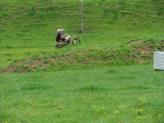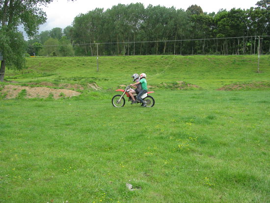 Heute konnten wir auf Sheryns Befehl hin ausschlafen. Wir standen um kurz nach halb 10 auf und molken die Kuh. Als wir damit fertig waren und erneut am Haus waren war bereits ein riesiger Tisch gedeckt. Im selben Moment kamen die Freunde von Sheryn und Steve mit ihren 3 Kindern an. Mit 10 Personen aßen wir dann Pfannkuchen mit Ahornsirup und Erdbeeren, Würstchen und Bacon vom Grill sowie Spiegeleier und Pilze. Das Frühstück war so sättigend, dass wir das Mittagessen auf jeden Fall ausfallen lassen würden. Irgendwann frage Jarred Robin, ob er einmal ein Motocrossbike fahren wolle. Robin stimmte der Sache gerne zu. Laura ging mit und sah sich das ganze mit an. Zuerst nahm Jarred Robin mit sich mit. Danach wäre Laura dran gewesen, die jedoch nur Flip-Flops trug und ihr das zu gefährlich war. Sie bekam dann aber von einem anderen Jungen, der zusah, die Gummistiefel geliehen. Das Mitfahren hat außerordentlich Spaß gemacht und war irgendwie viel zu schnell rum. Besonders die Beschleunigung dieses kleinen Bikes war erstaunlich. Jedoch war Robin der Mutigere von uns beiden, da er sich entschloss allein zu fahren. Nachdem er das Bike erst einmal ein paar Mal abgewürgt hatte fuhr er um ein Gefühl für die Maschine zu bekommen eine Runde nur im ersten Gang. Danach traute Robin sich mehr und wollte schneller fahren, das ging so weit auch ganz gut nur nachdem er dann da Bike das 2te mal geparkt hatte, musste er es erneut starten. Nachdem Robin wieder mehrere Male abgewürgt hatte, gab Jarred ihm einen Tipp. Diesen Tipp nahm sich Robin zu Herzen, leider ein wenig zu sehr, da dieser Start in einem Unglück endete. Nachdem Robin zu viel Gas gegeben hatte raste das Bike los Richtung Zaun. Irgendwie konnte Robin das Bike nicht mehr umlenken und nahm erst einmal 5 Meter Kuhzaun mit bevor er einfach nach rechts umfiel. Wir rannten sofort zu ihm und halfen ihm hoch. Bis auf ein komplett zerissenes T-Shirt, ein paar gequetschten Fingern und ein paar blauen Flecken war ihm nicht passiert. Damit beendete Robin jedoch auch seine Motocrosskarriere. Als wir uns wieder auf den Weg zum Haus machten wurden wir von Steve mit einem fiesen Grinsen begrüßt. Er und Jarred amüsierten sich köstlich über Robins Unfall, während Sheryn doch ein wenig besorgt war. Um den Schrecken aus den Knochen zu bekommen beschloss Robin erst einmal zu duschen und die offene Wunde an seinem Bein auszuwaschen. Währenddessen bereitete Laura gegen Robins Willen einen Beutel mit Eis vor, den er sich auf die Finger und den blauen Flecken an der Hüfte legen sollte. Den Rest des Tages machten wir nicht mehr viel, da Robin nicht mehr in der Stimmung war viel zu unternehmen. Daher lasen wir einfach nur noch unsere Buecher. Gegen Abend bekam Robin dann noch einen dicken Verband um Finger und Bein, der noch eine Salbe enthielt, die Prellungen lindern sollte. Somit gingen wir nach Toast mit gebratenem Schinken und Butter ins Bett schlafen.