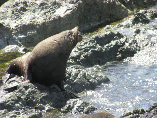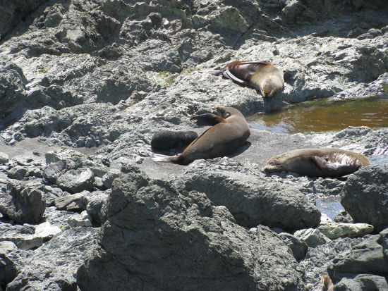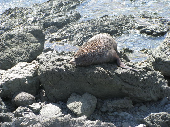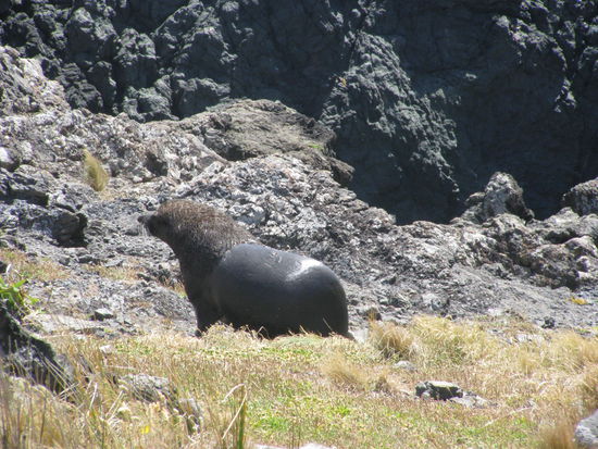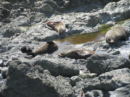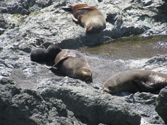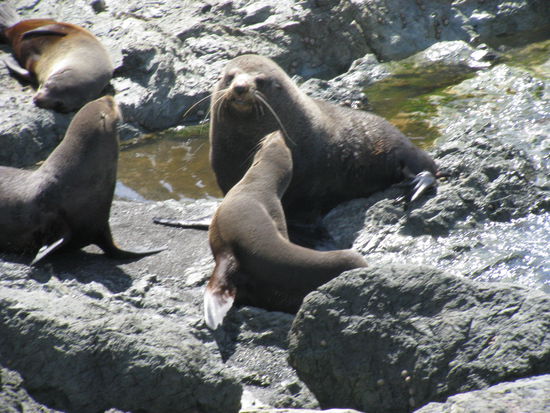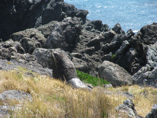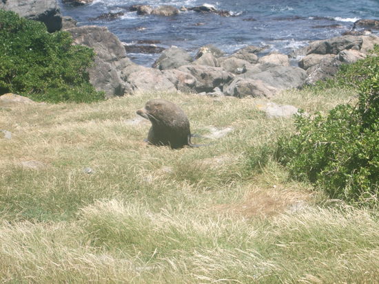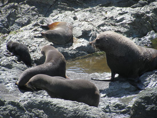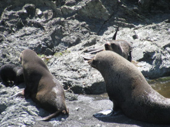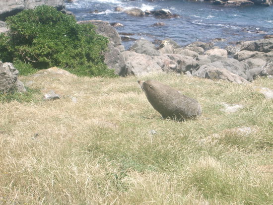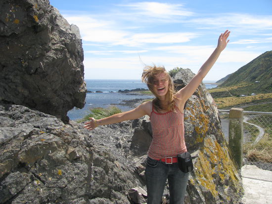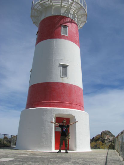 Heute machten wir einen Ausflug zum Cape Palliser. Wir fuhren eine Weile und kamen dann an unserem Zielort an. Wir hatten unterwegs zwar das Gefühl, dass wir uns verirrt hätten, kamen aber doch noch an. Zuerst betrachteten wir eine Weile die Seehundkolonie, die am Cape lebte und weswegen wir uns eigentlich dorthin auf gemacht hatten. Als wir uns vorsichtig der Kolonie näherten schossen wir viele Bilder von den süßen, aber wirklich großen und irgendwie furchteinflößenden Tieren. Wir hatten uns beide je auf einem Stein positioniert als ein großer Seelöwe kam und sich direkt vor unserer Nase auf einem Stein in der Sonne platzierte. Dieser befand sich nur knapp einen Meter von Robins Standort und wir beide bekamen leichtes Muffensausen, da wir wussten, dass die Tiere ziemlich böse beißen können. Lauras Idee war es einfach sich Tod zu stellen, wie es die Opossums in Neuseeland machen, um den Seehund nicht zu verärgern. Da sich dieser jedoch nicht um uns zu Kümmern schien traten wir langsam den Rückzug an. Am Auto angekommen atmeten wir tief durch und aßen zu Mittag. Danach entschlossen wir uns noch einmal den Leuchtturm am Cape hochzuklettern. Da es sowieso schon windig war wurde das Ganze eine echte Herausforderung. Die Treppe war wirklich schmal und hatte 250 Stufen (Ja wir haben sie gezählt!) die sehr steil hinauf gingen. Oben angekommen hatten wir dann erst mal das Gefühl weggeweht zu werden. Schließlich schossen wir doch noch ein paar Bilder und mussten uns dann bei einer der stärksten Böen an den Leuchtturm klammern um nicht verweht zu werden. Da es leider zu wolkig war konnten wir die Südinsel, die man von dem Punkt eigentlich sehen konnte, nur erahnen. In einem windstillen Moment kletterten wir dann wieder hinunter, wobei sich bei dem Anblick Robins Höhenangst ein wenig meldete. Wir entschlossen uns noch einmal zu den Seelöwen zu gehen, bevor wir die Heimreise antreten würden. Diesmal trafen wir noch ein paar Holländer, die uns auf einige Babys aufmerksam machten, die wir zuvor nicht gesehen hatten. Diesen Anblick genießen wir noch eine Weile bevor wir wieder ins Auto hüpften. Wieder in Wellington angekommen kochten wir uns zu Abend. Damit die Uniformen keine Gerüche annehmen würden, packte Laura diese in einen Plastiksack und hing noch ein Taschentuch mit einem Spritzer Parfüm rein. Nach dem Essen lasen wir dann zusammen Laura Vertrag durch.