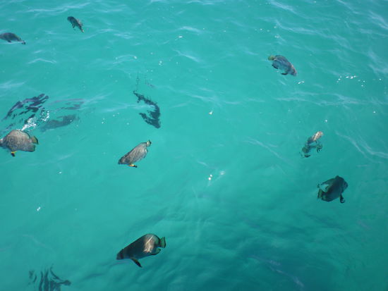 Zum Abschluss sind wir, einen Tag vor Abflug Richtung Singapur, mit 'nem großen Segel-Katamaran zum Great Barrier Reef raus gefahren. Habens uns nicht entgehen lassen dort zu tauchen - und es war der Hammer. So viele kleine und große Fische und Korallen in allen Farben die man sich nur vorstellen kann. Riesige Meeresschildkröten sind in greifbarer Nähe mit uns geschwommen. Sogar die Orange weißen Nemos waren da Unterwegs.