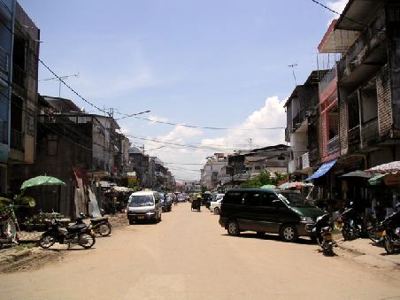 da wir erst gegen abend angekommen sind und ich die erkrankte iris (magenverstimmung mit schweissausbruechen) irgendwie in ein klimatisiertes zimmer bringen musste entschieden wir uns fuer ein empfohlenes guesthouse nahe dem mekong. fuer sfr.25.- hatten wir immerhin holzfussboden, klimaanlage, minibar, kabel tv, ect...