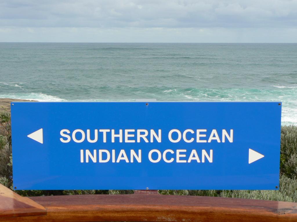 Beim Cape Leeuwin treffen der Indische Ozean und der Atlantik aufeinander, wobei sehen tut man das natürlich nicht, außer an der Tafel!
