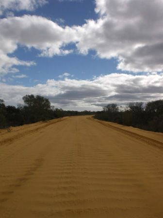 on the road - die Straßen sind oft nur aus rotem oder gelbem Sand der gewalzt wird