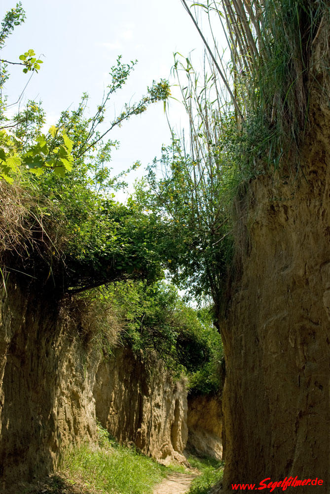 Wir laufen dann den Rundweg um die Insel weiter, kommen an Unmengen von Brombeersträuchern vorbei. Leider haben wir noch nicht August. Wäre es so, würde der Spaziergang sicher mehrere köstliche Stunden dauern ... Die weitere Inselumrundung führt uns an bambusähnlichem Schilfgras vorbei und wir gelangen in das Oberdorf, dessen kleine Kirche mit dem Turm den Vorsitz über das Ober- und Unterdorf der Insel führt. Der folgende Abstieg über einen teilweise gestuften Weg wird durch faszinierende Blicke auf den Hafen, das Meer und die beiden nahegelegenen unbewohnten Inselchen Vele Srakane und Male Srakane (ebenfalls aus Sand) sowie etwas weiter entfernt unserer Startinsel Lošinj versüßt.