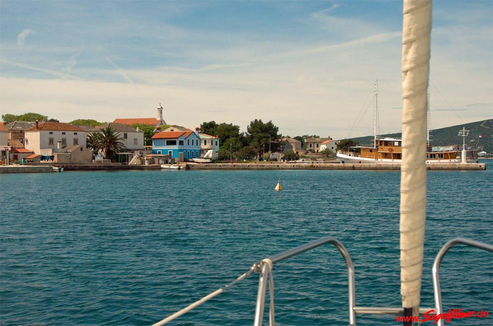 Im Ilovik-Kanal angeln wir uns dann gegen 13:00 Uhr eine Boje und unternehmen nach einem Kaffee einen Spaziergang über die wunderschöne Blumeninsel. Denn in der Tat blühen hier sehr viele Blumen: wilde Blüten breiten sich großflächig am Ufer aus, deren feine, leuchtende Blütenblätter sich leicht im Wind bewegen. Große Stauden gedeihen in den liebevoll gestalteten Gärten der 175 Iloviker Einwohner. Schade, dass Ihr den Duft der vielen blühenden Jasminbäume nicht riechen könnt. Die kleine Kirche "Sankt Peter" beherbergt geschnitzte Holzfiguren, die von nach Amerika ausgewanderten Inselbewohnern gestiftet wurden. Wenn Ihr in der Kirche steht, glaubt ihr vielleicht zunächst, ein Handwerker repariert in den heiligen Mauern einen Defekt. So laut wie ein Schlagen mit einem kleinen Hammer ist die regelmäßige Arbeit des Uhrwerks der Kirchenuhr zu vernehmen. Man möchte meinen, der hier predigende Pfarrer hätte die Befürchtung, ohne dieses Metronom aus dem Takt zu geraten.