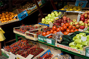 Auf unserer Entdeckungstour kommen wir an einem Obst- und Gemüsemarkt vorbei. Eine Obstverkäuferin preist ihre frischen Erdbeeren so leidenschaftlich an, als würde sie den Früchten eine Liebeserklärung machen. Wir kommen also nicht "ungeschoren" an den meist leuchtenden Ernteerträgen vorbei, füllen unser Gepäck mit vielen leckeren Vitaminen und kehren mit vollen Bündeln zum Liegeplatz unserer Cleo zurück.