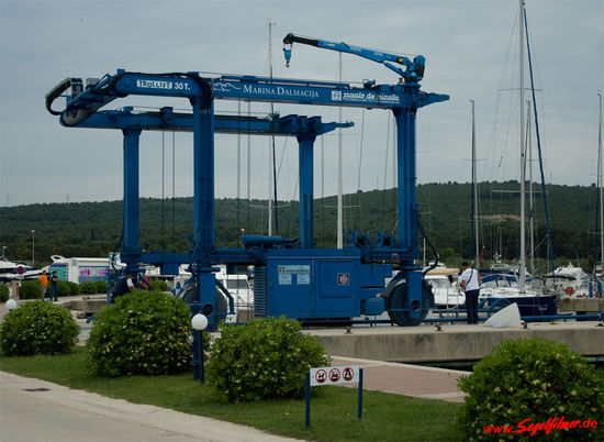 Die Marina bietet offenbar alles, was ein Nautiker so braucht. Auch eine Wäscherei, zu der wir aufgrund unseres Liegeplatzes fast zwei Kilometer Anmarsch haben. Mit den Wäschesäcken beladen schreiten wir wie der Weihnachtsmann mit seinem Wichtel über das Marinagelände. 80 Kuna pro Maschine ist der Preis. Dafür bekommen wir unsere Wäsche am selben Abend ordentlich gebügelt und mit einem frischem Duft zurück.