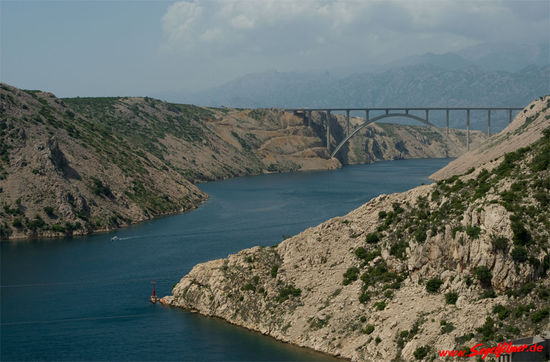 Wir fahren aus Richtung Zadar kommend zur Paklenica-Schlucht. Auf diesem Weg führt die Straße über die Maclenica-Brücke, von der wir einen phänomenalen Ausblick über die Novski Ždrilo haben, welche die Wasserverbindung zwischen dem Novigrad Meer und dem Velebitski-Kanal ist.