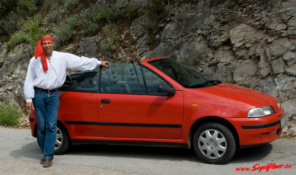 Um die Insel ein wenig kennen zu lernen, mieten wir uns einen PKW. Den gibt es nicht in Milna, sondern in Supetar, was 18 Kilometer entfernt ist. Der prima Service der Autovermietung holt uns direkt am Liegeplatz unseres Schiffes ab, um mit uns nach Supetar zu fahren. Der Chef fährt uns persönlich. Und er erzählt. Er erzählt mit Liebe von seiner Insel, von Brac. Von den teilweise entvölkerten Dörfern, wie Ložišca. Eine Krankheit der Weinreben zerstörte die Existenzgrundlage der Bauern. Viele der Betroffenen wanderten damals nach Südamerika aus. Heute leben die Menschen meist vom Tourismus. Wie er selbst auch. Im Winter ist er nicht auf Brac. Dann ist er in ganz Deutschland unterwegs um Gebrauchtwagen aufzukaufen, die er in den Süden bringt. Seine Frau ist auch aus Deutschland, aus Karben. Hey, das ist bei uns um die Ecke. So ein Zufall! Beim Plaudern vergeht die Fahrt wie im Flug und am Stützpunkt in Supetar angekommen zeigt er uns die verfügbaren Autos und fragt: "Which one do you want?" - Natürlich das kleine rote Cabrio!