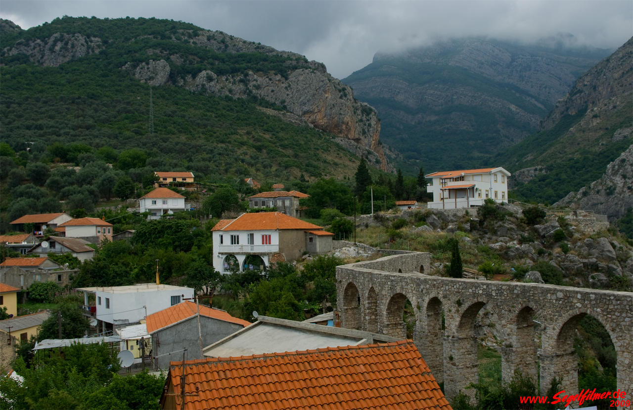 Der türkische Äquadukt in Stari Bar. Die Knicke in der Konstruktion wurden mit Bedacht angelegt: bei Erdbeben kann sich das Bauwerk dadurch selbst abstützen.