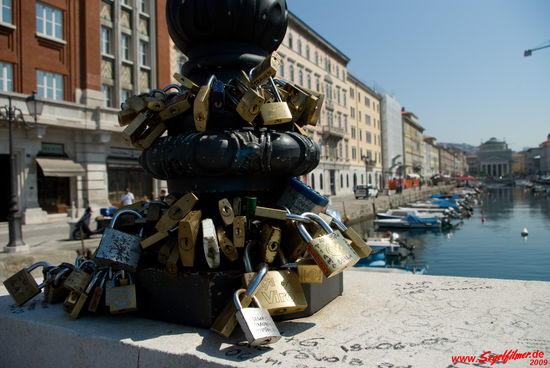 Hier am Canal Grande (ja, den gibt's auch in Triest! - Oder ist der tatsächlich sooo lang ? ) haben sich eine ganze Menge Leute entschlossen, sich für immer zu binden. Zumindest die Schlösser halten ganz fest, ich habe persönlich dran gerüttelt!