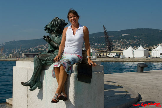 Mit den anderen Reisenden werden wir direkt am Kai vor der Piazza dell'Unità abgesetzt. Ein riesiger Platz, auf drei Seiten von prunkvollen Palazzos eingerahmt: rechts der Palazzo del Governo und der Palazzo Strati mit dem Café degli Specchi geradeaus schauen wir auf den Palazzo Municipale und rechts steht der Palazzo della Regione F.V.Giulia. An der vierten Seite rauscht erst die Strasse und dahinter rauscht die Adria, deren leichte Wellen an die Steinmauer klatschen.