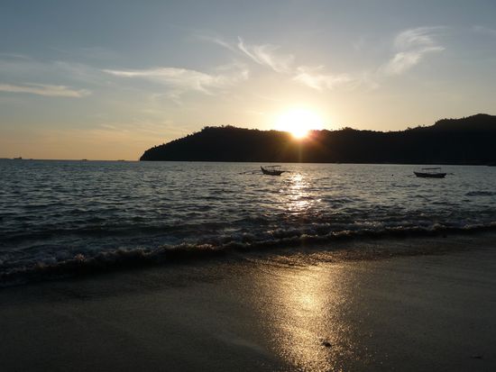 Am Abend konnten wir dann widereinmal einen richtig schoenen Sonnenuntergang mitverfolgen. Die letzten Tage und Wochen waren wir eigenlich immer im Landesinneren, und da ist das halt nicht so spektakulaer. Aber dieser hier war Hammer!!!