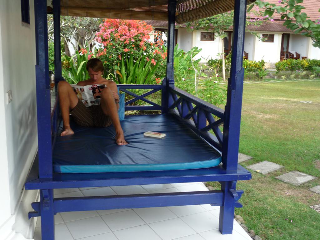 Am ersten Tag haben Simon, Stephan und ich dann auch die Hotelanlage in vollen Zuegen genossen. Wir sassen auf Liegestuehlen am Strand (mit eigenem Strandtuch!!!) und haben uns mit gutem Essen und Bier im Strandpavillion verwoehnen lassen Die anderen drei sind Tauchen gegangen.