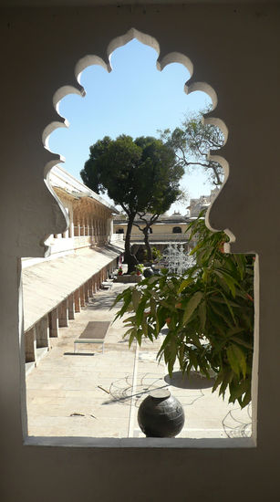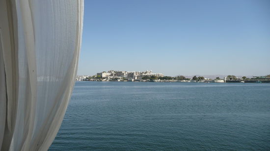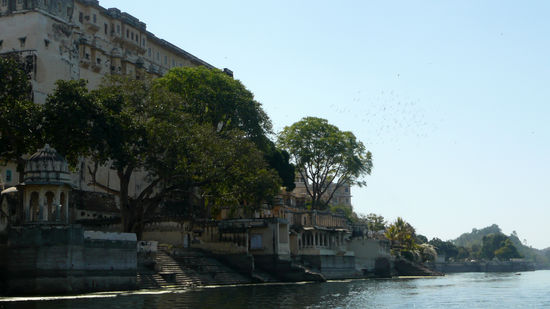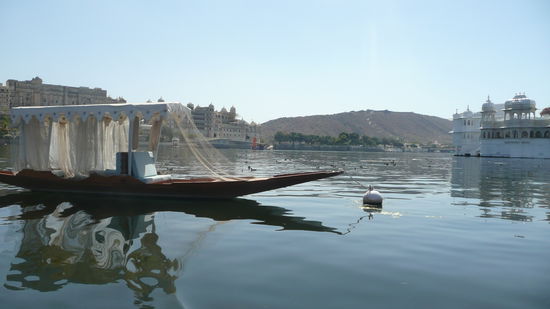 Gegen Mittag, nach fast 30h Fahrzeit erreichen wir endlich das Ziel: Udaipur. Bei Ankunft das gewohnte Bild: Unzählige Fahrer und Schlepper, die sich darum kloppen die Ankömmlinge in ein bestimmtes Hotel zu führen. Und da ich in dem Bus der einzige Nicht-Inder bin, bin ich ganz offensichtlich besonders beliebt und bin wahrlich froh, als ich endlich einen Fahrer finde, der mich lediglich in die Innenstadt fährt, ohne mir zugleich ein "very cheap, good price for you my friend"-hotel aufzwingen zu wollen. Ich entsteige der Rikschaw unmittelbar vor dem Eingangstor des City Palace und entschwinde in einer der Nebengassen um nicht gleich wieder zum Objekt der Händlerbegierde zu werden. Ich bin hundemüde und daher nur froh, als ich einige verwinkelte Straßen weiter ein unheimlich schönes und nettes Homestay finde. Es wird von einem älteren Ehepaar geführt, wobei die einfachen Zimmer in einem großen Gebäude liegen, dass sich um einen Innenhof situiert. Ich beziehe mein Zimmer und fühle mich gleich wohl. Öffne ich die Fensterläden und blicke durch die schartenartigen Fenster, so kann ich tatsächlich noch eine kleine Ecke des Pichola-Sees sehen. Der See liegt unmittelbar am Fuße des Palastes und ist noch mit Wasser gefüllt, was in regenarmen Zeiten nicht unbedingt die Regel ist. Der See wurde von Udai Singh II vergößert - ein Dorf, nämlich Picholi musste dafür weichen. Inmitten des Sees liegen zwei Inseln, zum einen Jagniswas und zum anderen Jagmandir. Die erste werde ich einige Tage später besuchen. Doch zunächst bin ich einfach nur froh angekommen zu sein, lege mich auf das hölzerne Bett und bin schlichtweg froh, einige Stunden schlafen zu können und die Kühle des raumes zu genießen.