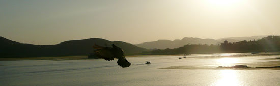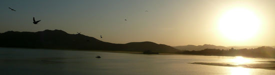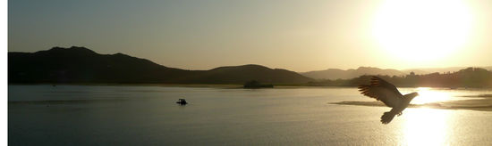 Später am Abend, es ist nicht mehr ganz so heiß mache ich mich erstmalig auf Udaipur zu entdecken und bin gleich von Beginn an begeistert. Die Altstadt liegt auf einem sanften Hügel am Fuße des Palastes und erstreckt sich dann bis hinab zum Ufer des Sees. Das Leben scheint in dieser Stadt auf nette Art und Weise zu pulsieren. Es ist ein wenig touristisch, aber nicht zu sehr, es ist laut und hektisch, aber nicht zu sehr, es ist schmutzig, aber nicht zu sehr aber es ist vor allem bunt und schön. Stets hat man einen tollen Ausblick auf den Palast, nachts in warmen Farben illuminiert, auf die bunten Wäscheghats, an denen Frauen ihre Saris in die Sonne zum trockenen legen und auf den See, über dem Vögel ihre Bahnen ziehen. Am Horizont bilden die im Nebel liegenden Hügel eine rahmende Kulisse und lassen tatsächlich Assoziationen von 1001 Nacht aufkommen. Ich jedenfalls schländere zunächst durch die Gegend und genieße irgendwann ein leckeres Mal in einem der zahlreichen Roof-Top- Restaurants mit Blick auf Palast und See. Wirklich, wirklich schön!