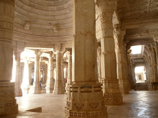 Nach einer Nacht voller schrill kitschiger, bunter, lauter und hysterischer Träume (die letztlich doch keine Träume waren sondern schlichtweg die Ereignisse des Vortages) entschließe ich mich, heute einen Tagesausflug nach Ranakpur zu machen - einen jainistischen Tempel rund 3 Stunden bzw. 100km Busfahrt von Udaipur entfernt. Der Tempel liegt versteckt in einem einsamen, bewaldeten Tal und wird zu einem der Höhepunkte meiner Reise, zumindest wenn es um etwas von Menschenhand geformtes, also architektonische Meisterwerke geht.