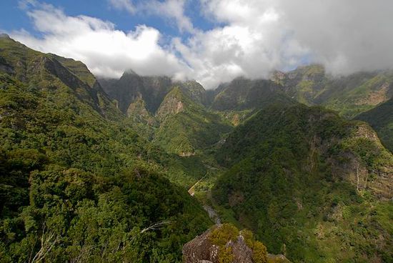 Gut beschrifteter, breiter Weg an einer Levada entlang durch den Lorbeerwald. Am Weg gibt es auch Verkaufsstände mit Erfrischungen und heimischen Produkten. Von der Aussichtskanzel Balcoes aus haben wir einen herrlichen Blick auf den höchsten Berg, den Pico Ruivo