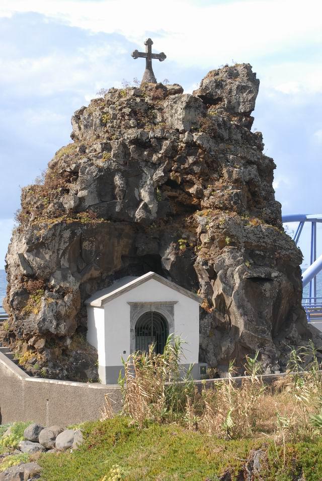 Kurz vor Sao Vicente machen wir einen Abstecher zu einer Kapelle auf einem Hügel. Bei 25 Grad steigen wir 174 Stufen zur Capelinha bei Lameiros auf und sehen Sao Vicente von oben.
