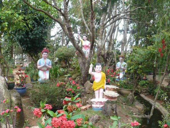 Die Tour: Durch die Berge an den Gemüse, Tee- und Kaffeplantagen vorbei, Xuan Huong See zum Prennwasserfall. Mittagspause in Dalat, Sommerpalast des letzten Kaisers Vietnam, Pagode und Crazy-House und dann noch Linh Phuoc Pagode und wieder zurück.