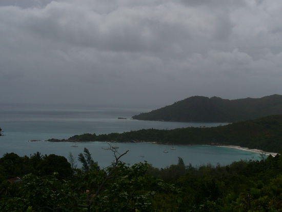 Auch auf Praslin: Regen! Froh, überlebt zu haben, kamen wir durchnässt an unserem Guesthouse "Beach Villas" an. Dort fragte uns der Gästehausbesitzer erstmal, wie wir denn hergekommen seien. Mit dem Flugzeug. "Was? Bei dem Wetter wär ich ja niemals geflogen!" Wie beruhigend.