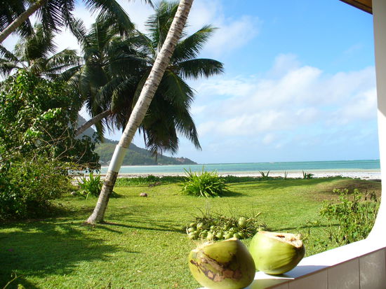 Am Guesthouse wurden uns unsere ersten frischen Trinkkokosnüsse gereicht. Erfrischend! Nach einem Terrassen-Seybrew gab´s auch schon wieder Abendessen.