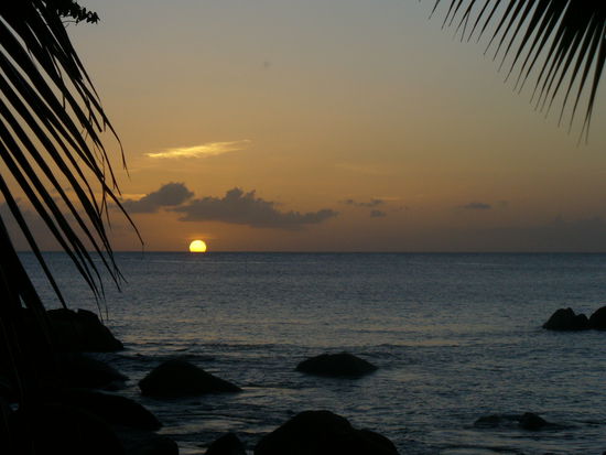 Da ich immer noch nicht genug von Fischen hatte, gingen wir noch mal Schnorcheln und dann gab´s bei kaltem Seybrew das erste Mal einen Sonnenuntergang, bei dem man die Sonne im Meer versinken sieht. Keine Wolken. Mit Wolken war aber auch immer schön.