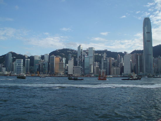 Den Weg zur Fähre fand ich sofort, durch einen sehr langen Gang und eine Art Brücke ging es zum Fährableger. Da die Star Ferry alle fünf Minuten ablegte, musste ich auch nicht lange warten, bevor ich einen Platz auf dem schwankenden Boot bekam. Die Fahrt durch den Hafen war viel, viel zu kurz - aber wahnsinnig schön. Hier konnte man die Skyline der Stadt in ihrer ganzen Pracht sehen und hatte tolle Ausblicke zu allen Seiten. Wirklich fantastisch!