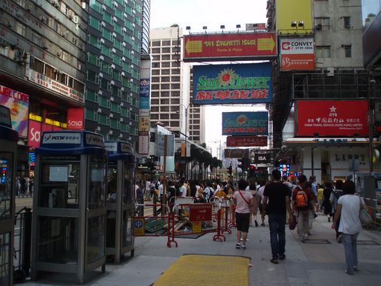 In Tsim Sha Tsui angekommen, hatte ich plötzlich das Gefühl, in einer anderen Stadt zu sein. Von einer guten Beschilderung war hier nichts mehr zu sehen, anstelle von Geschäftsleuten und jungen Frauen in Designerkleidung fand sich hier ein buntes Gewimmel der unterschiedlichsten Menschen wieder, übertönt vom ständigen Hupen und dem Motorenlärm des Straßenverkehrs.
