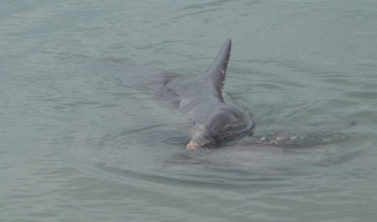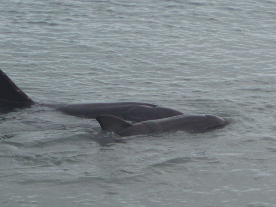 Es war trotz der Drängelei einfach wunderbar, das Kleine zu beobachten, wie es um seine Mutter herum trollte, bei ihr trank, und wie die beiden herum schwammen. Die anderen Delfine schwammen ebenfalls umher, manche ließen sich auch faul im Wasser treiben, und einer posierte regelrecht wie ein Model für die Zuschauer.