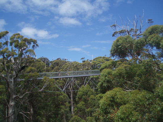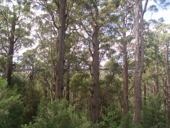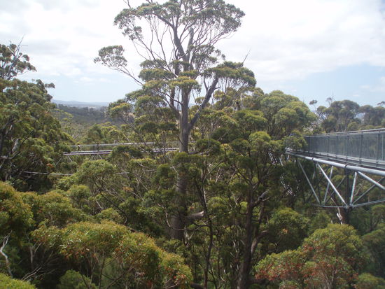 Lunch hatten wir in Walpole am Nornalup Inlet, wo drei Flüsse nebeneinander ins Meer fließen und so einen ganz besonderen Landstrich schaffen. Nur hier wächst der riesige Tingle-Baum. Danach ging es weiter zum Valley of the Giants im Walpole-Nornalup National Park. Hier gibt es einen Tree Top Walk (Baumwipfelpfad), so dass man über einen Steg, 40 Meter über dem Boden, die Bäume erkunden kann - die perfekte Möglichkeit, die Karri- und Tingle-Bäume zu erleben.