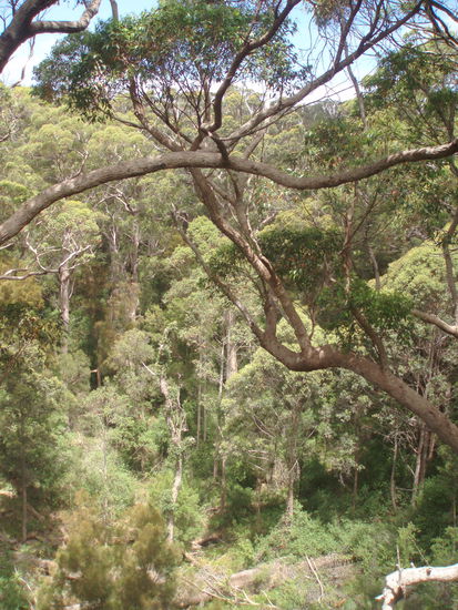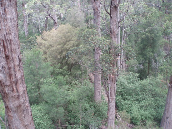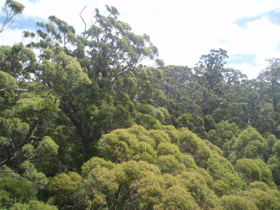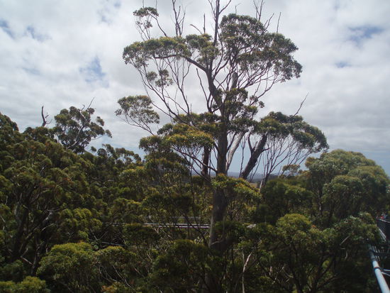 Wir fuhren zum Bicentennial Tree im Warren National Park, einem der ältesten Nationalparks Australiens. Dies ist ein 68 Meter hoher Karri-Baum, den man mit Hilfe einer Leiter erklimmen kann. Ungefähr die Hälfte der Gruppe traute sich, die anderen blieben lieber am sicheren Boden, ich auch. Beeindruckend war der Baum trotzdem, und außerdem der höchste Tree Top Lookout (Baumwipfelaussichtspunkt) der Welt - scheint so als ob hier Rekorde gesammelt werden.