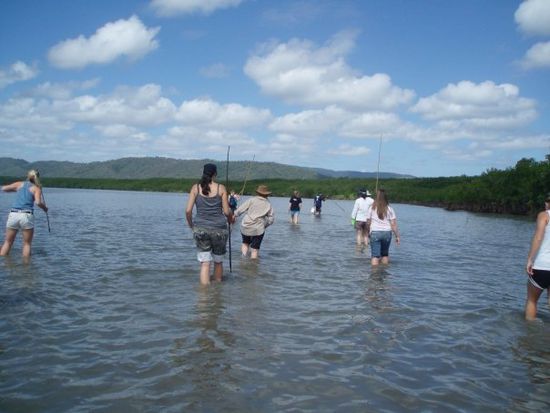 Die Exkursion sollte dazu dienen, direkt mit Aborigines in Kontakt zu kommen, die die alten Traditionen noch bewahren. Sie leben sozusagen in ständiger Grenzüberschreitung zwischen moderner und traditioneller Lebensweise und gehen so z.B. im Supermarkt einkaufen, aber auch jeden Tag am Strand jagen.